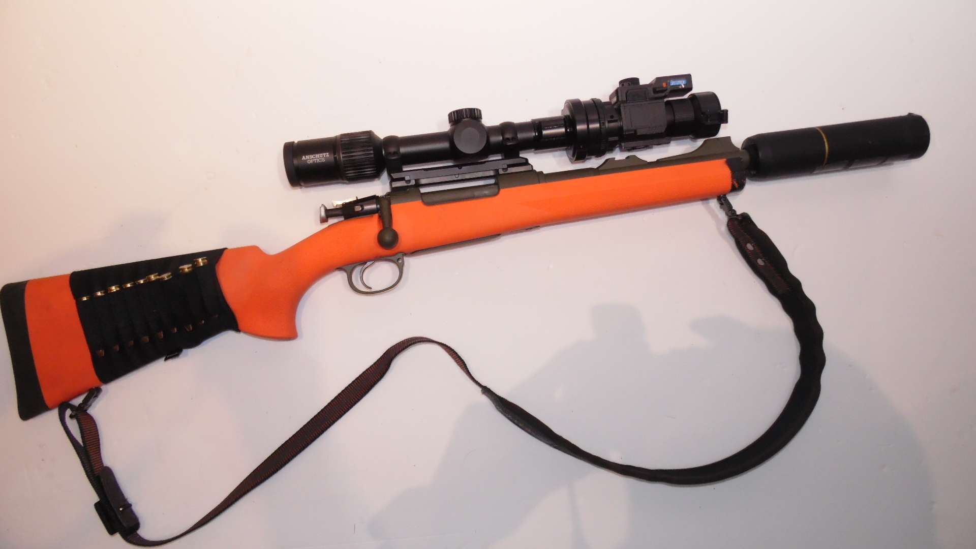 Ausstattung: Handspannung, alle Montagen, Schalldämpfer verriegelt, offene Fluchtvisierung, seitliche Riemenbügel und vieles mehr.
