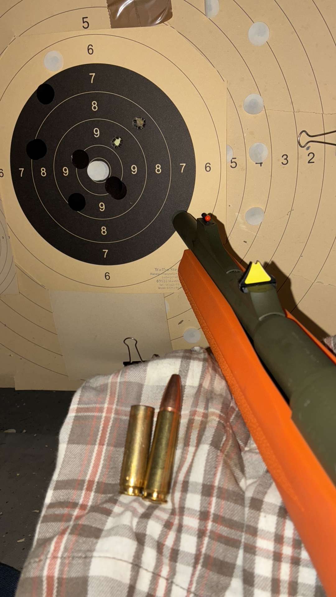 - Gekürzte .308er Hülse mit Kurzwaffenpulver